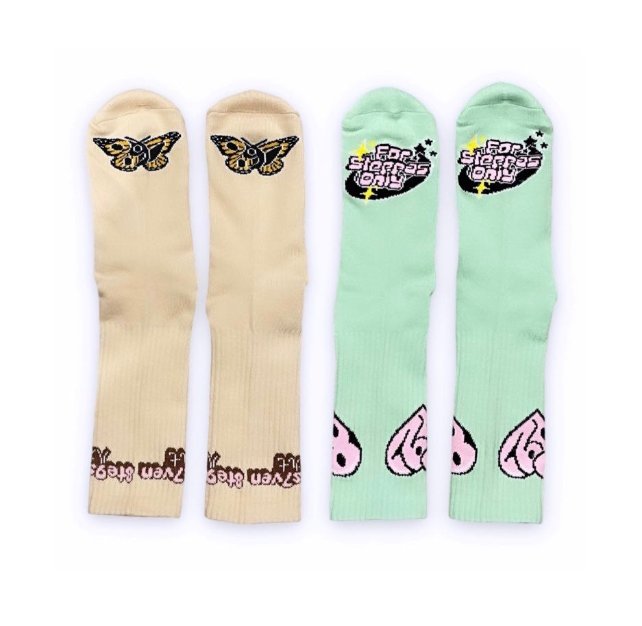 Brown 897 Butterfly sock & Green with Pink heart Y2K for steppas only sock